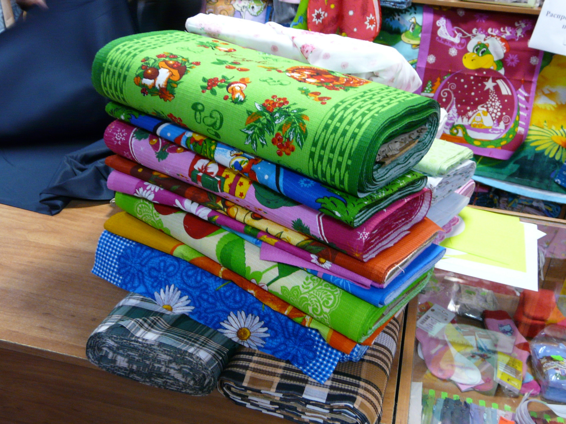 На этом сайте вы можете познакомиться с ассортиментом тканей у нас на складе или в магазине, купить оптом или в розницу ткани и готовую продукцию, которая подойдет для вашего интерьера, а также сделать необходимый заказ. Пара остановок от центра на общественном транспорте или пять минут на своем авто и Вы можете купить постельное белье, домашний текстиль, трикотажные изделия, махровые полотенца, пледы, покрывала, одеяла и подушки с натуральным наполнителем или синтетическим, мягкий инвентарь для кухни, пеленки детские по оптовым ценам. Сейчас это более, чем актуально. Приветливые продавцы в магазине ткани помогут выбрать и правильно посчитать необходимое Вам количество для самостоятельного пошива. Отдел швейной фурнитуры предложит нитки, тесьму, кружево и прочую мелочь, необходимую дома. Кстати, есть отдел специальной одежды и спецобуви, одежды для отдыха, охоты-рыбалки.